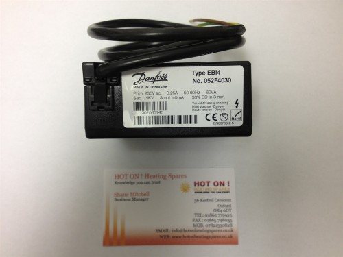 Brand New And Genuine, This Danfoss EBI4 S Transformer/Ignition Unit & Lead Service Kit (052F4064) fits A Wide Range Of Oil Boiler Burners Fits A Wide Range Of Oil Boiler Burners In The UK And Around The World. This version of the EBI transformer is also a direct replacement for the following previous Danfoss Versions: 052F0030, 052F4030, 052F4035 & 052F4064. This kit is the recommended version from Danfoss when carrying out an Oil Burner Service which needs a replacement EBI Transformer. 1 year guarantee from the date of purchase if the product becomes faulty.